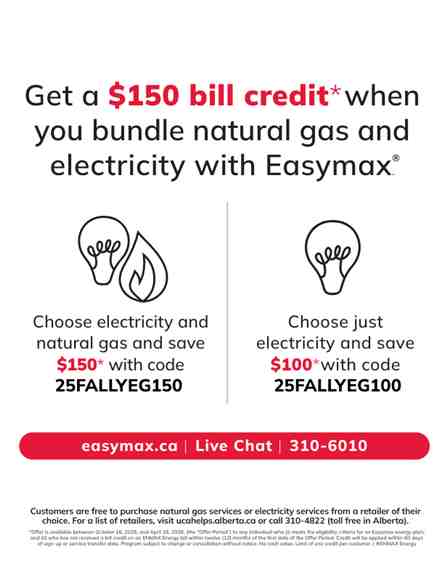 Get competitive electricity, natural gas and solar* options^ for your home or small business through Easymax® by ENMAX Energy. We offer the flexibility to choose energy plans for electricity and natural gas to suit your needs, mixing and matching to get a bundle that works best for you. Our Alberta-based customer care team is right where Easymax customers are.* Solar PV products and services brought to you by ENMAX Energy Corporation and its subsidiaries and affiliates, including ENMAX Generation Portfolio Inc. and a network of local installers across Alberta.